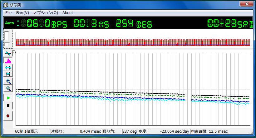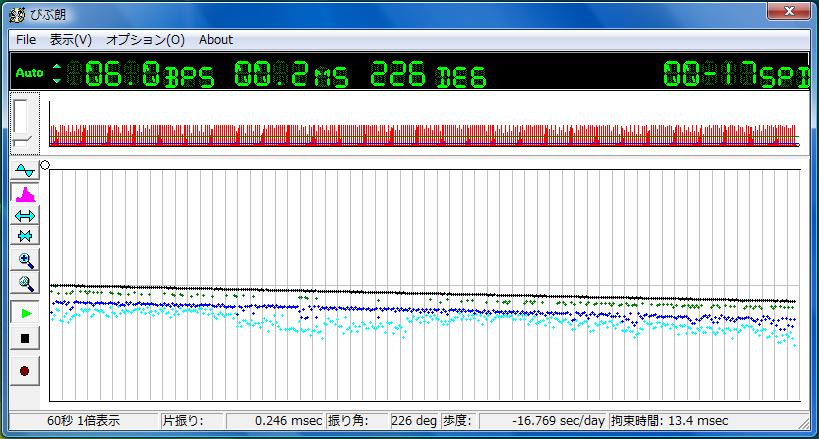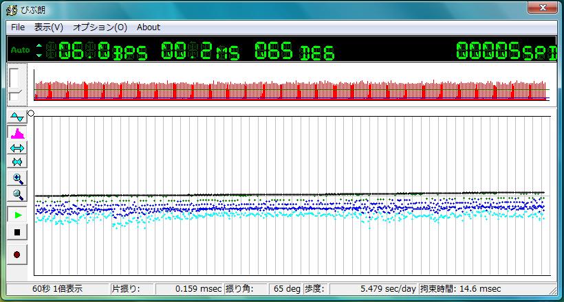 比較のため 同じ時計、ピックアップ を DELL Inspiron 1545 WindowsVista HomePremium で測定