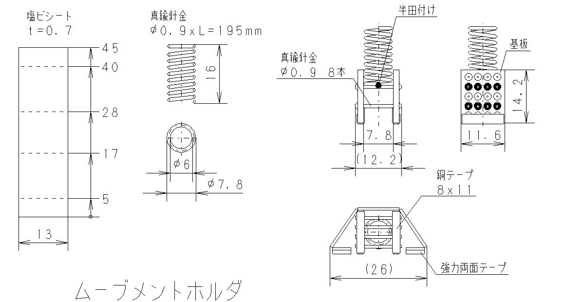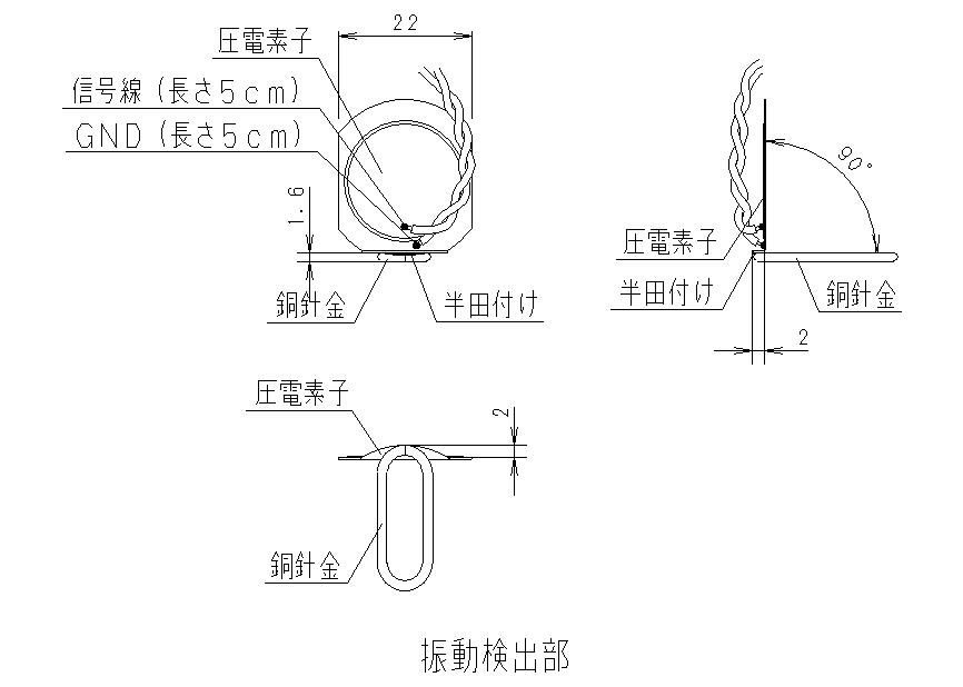 振動検出板は真鍮製針金でも可。(半田付けできれば何でも可だが 鉄系だと帯磁する可能性があるので消磁が必要)