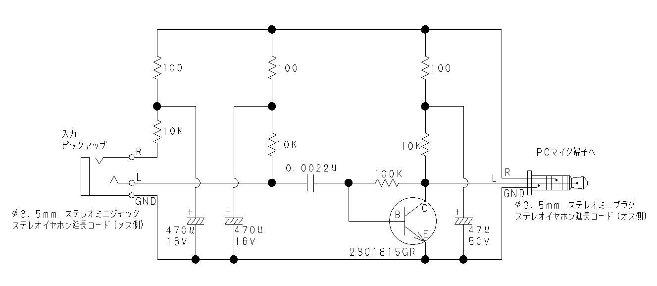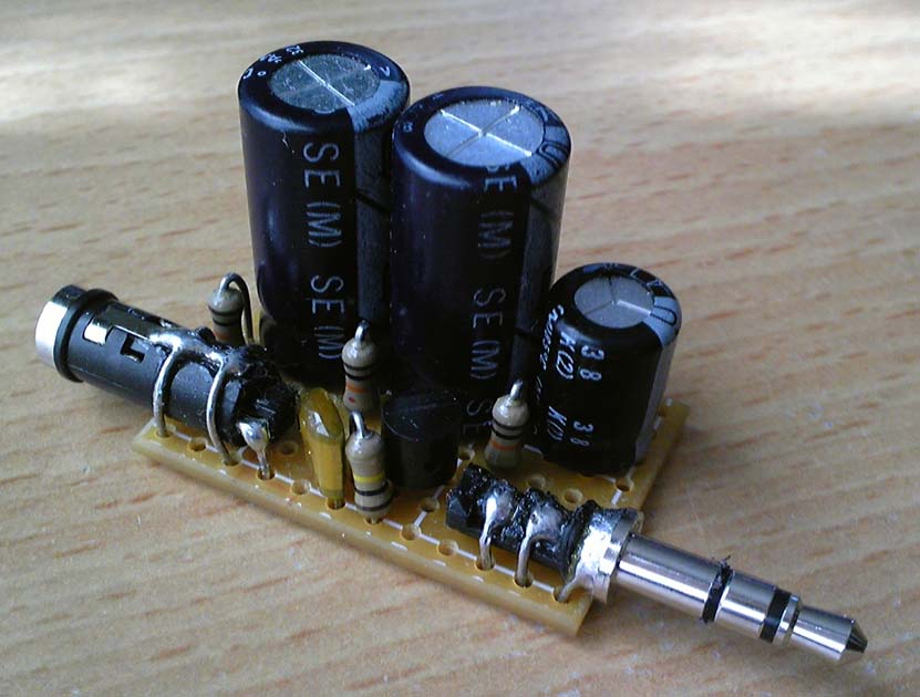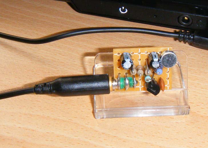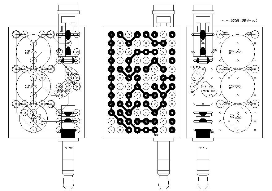 そこで、プラグインパワーを使った1石のアンプを内蔵したマイクを作った。