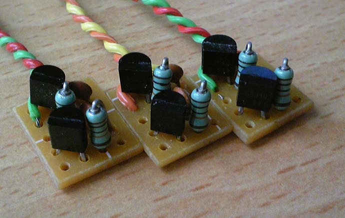 トランジスタはNPNでYかOならば何でも良い 消費電流は計算していないが 0.3mA 程度なので小信号用で十分。