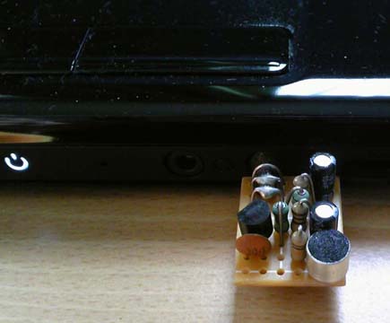 回路は プラグインパワーでアンプ と同じだが 電解コンデンサーの 220μF が なかった ので 47μF に変更